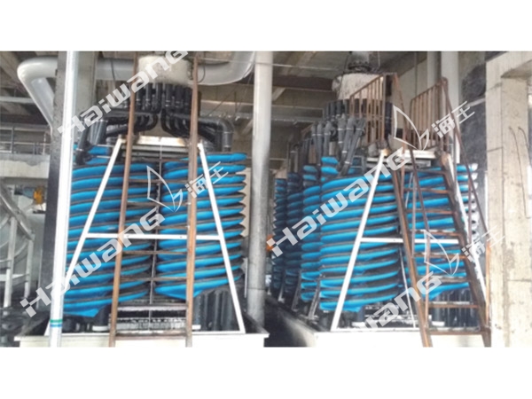 1、煤泥水經(jīng)大直徑分級濃縮旋流器分級濃縮,為進(jìn)入粗煤泥螺旋分選機(jī)做好濃度、粒度的準(zhǔn)備工作;